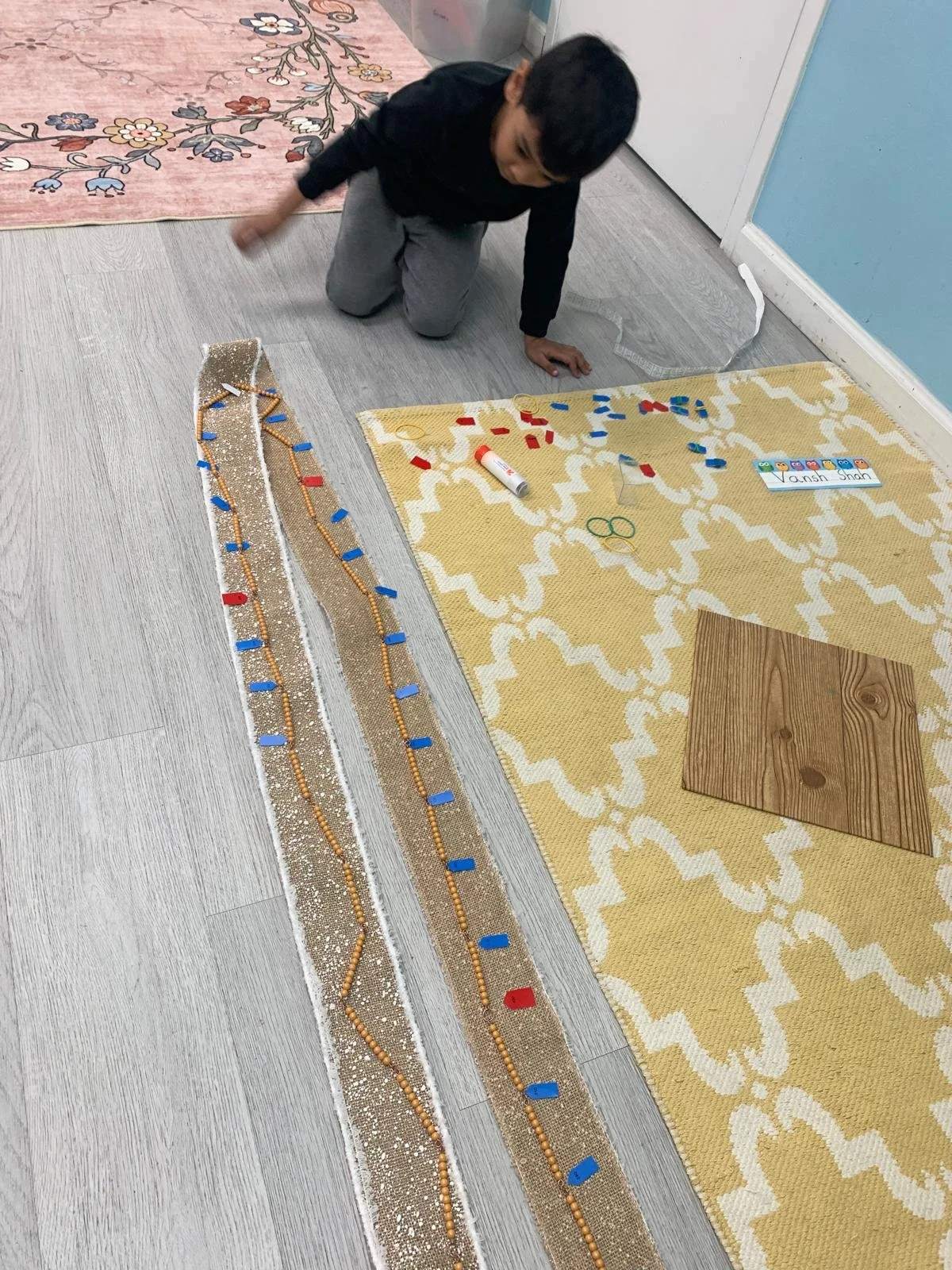 A 5–6‑year‑old deeply focused on advanced work.