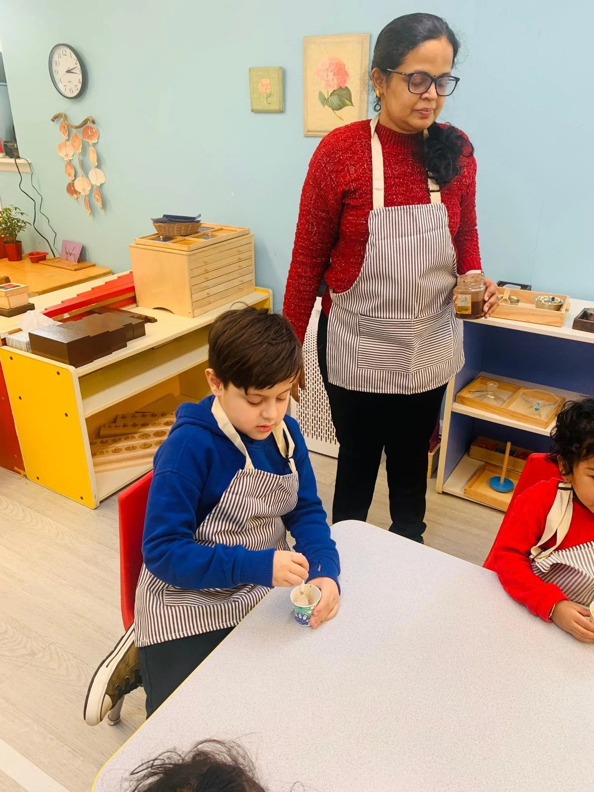 Our classrooms are intentionally designed to meet the developmental needs of the 3–6‑year‑old child. Materials are beautiful, precise, and self‑correcting, inviting children to explore independently.